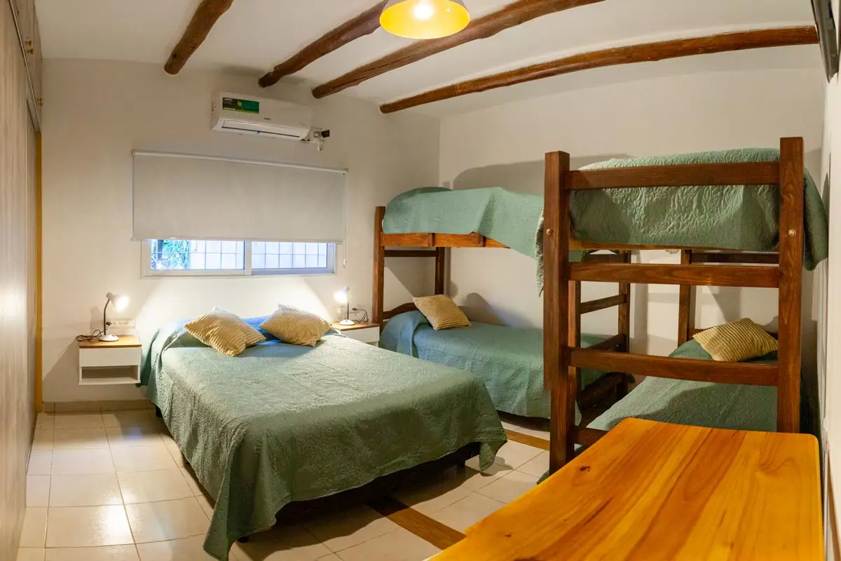 1 dormitorio con una cama matrimonial y 2 camas de plaza y media. 1 Baño. Cocina comedor.
