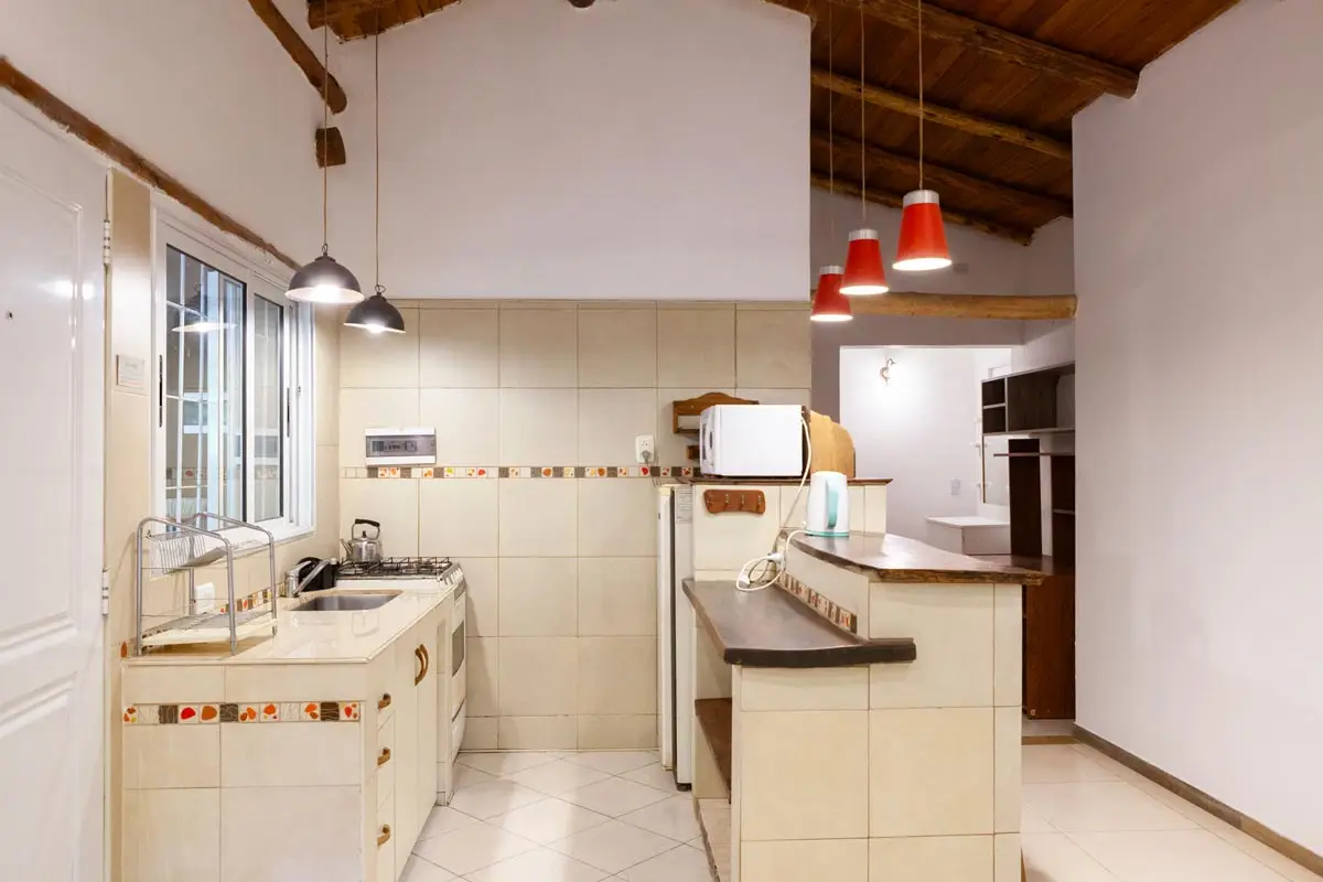 1 Baño. Cocina y Living con una cama de plaza y media.
